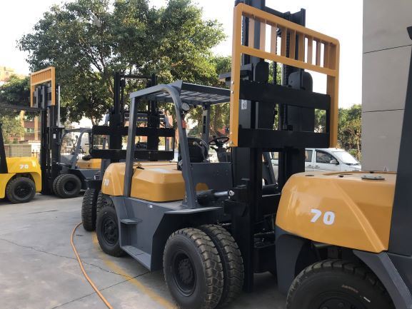 7 tonna katta Jou forkliftlari ulgurji va chakana qo'shimchalar uchun yaxshi, neft sanoati uchun barabanli qisqich ishi